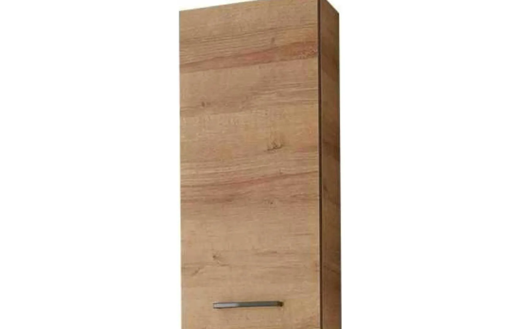 Der moderne Wandschrank überzeugt durch sein zeitloses Design in Riviera Eiche und fügt sich harmonisch in unterschiedliche Wohn- oder Badbereiche ein. Die Front mit grauer Kante sowie die dezenten grauen Griffe unterstreichen die moderne Optik. Dank der hängenden Montage wirkt der Schrank leicht und platzsparend und eignet sich ideal auch für kleinere Räume.