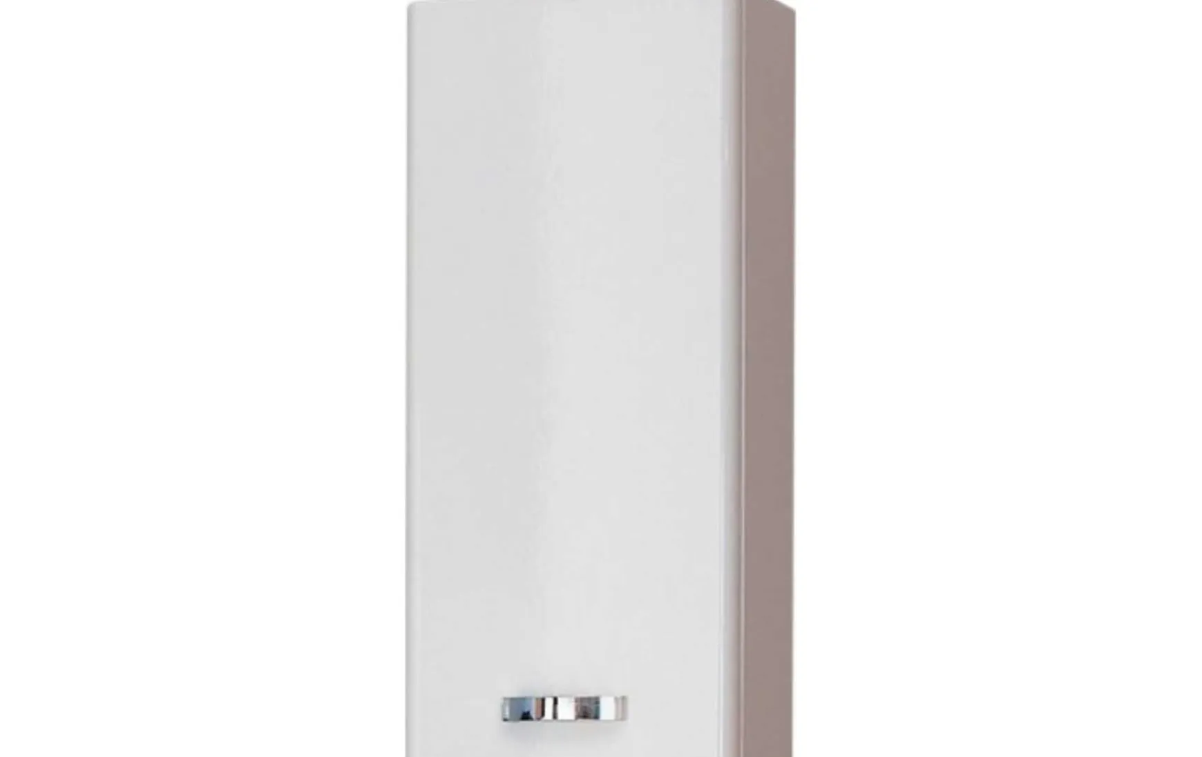 Der weiße Korpus in Kombination mit der hochglänzenden weißen Front und chromfarbenen Metallgriffen verleiht dem Wandschrank eine zeitlose, elegante Optik. Gefertigt aus hochwertiger MDF-Platte mit Melaminharzbeschichtung, ist das Möbel langlebig und besonders pflegeleicht. Mit Maßen von ca. 30 x 20 x 70 cm (B/T/H) passt der Schrank auch in kleinere Räume. Die Lieferung erfolgt zerlegt, Dekoration ist nicht im Lieferumfang enthalten.