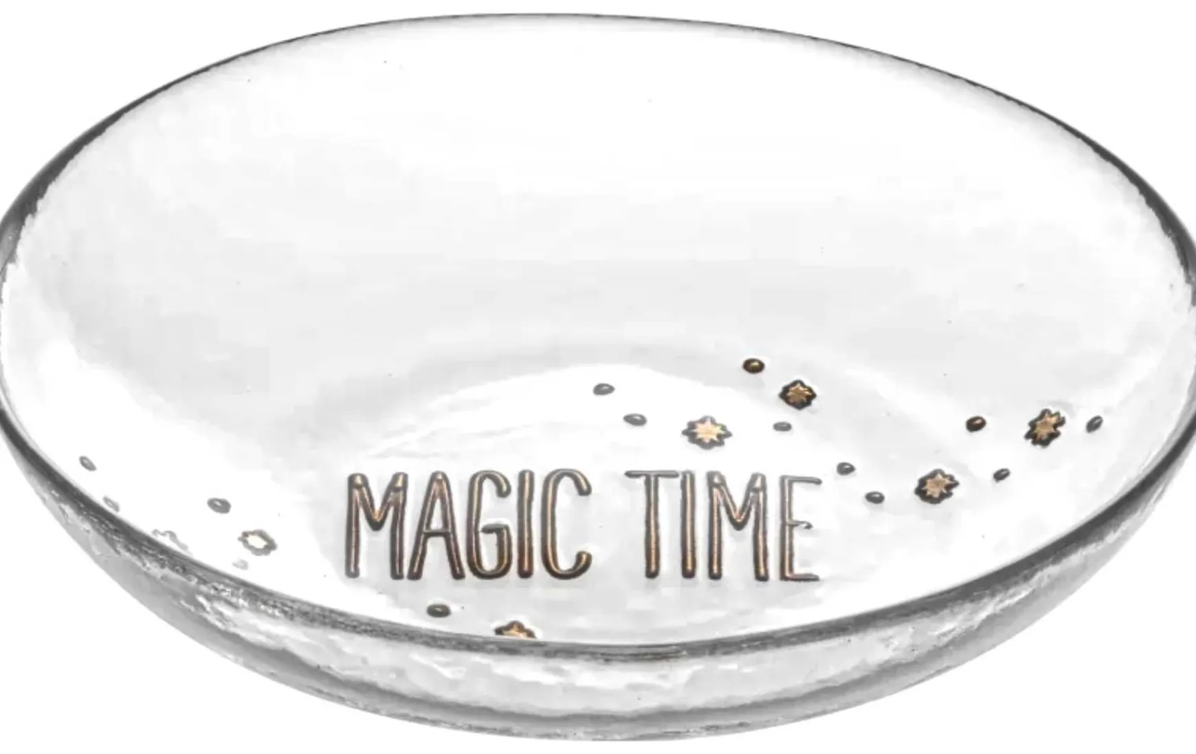 Dieser exquisite Teller ist mit dem Schriftzug „Magic Time“ in Gold und funkelnden Sternen verziert. Das elegante Design bringt festlichen Glanz und eine zauberhafte Atmosphäre in dein Zuhause. Ideal für Plätzchen, Obst oder als stilvolles Dekorationsstück, verleiht diese Schale jedem Raum einen Hauch von Magie und Eleganz. Perfekt für die Weihnachtszeit oder als besonderes Geschenk.