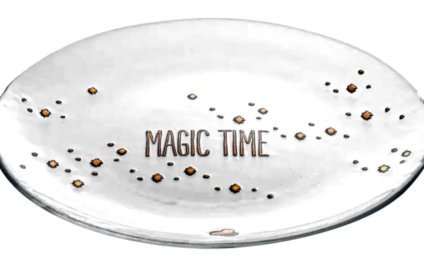 Dieser exquisite Teller ist mit dem Schriftzug „Magic Time“ in Gold und funkelnden Sternen verziert. Das elegante Design bringt festlichen Glanz und eine zauberhafte Atmosphäre in dein Zuhause. Ideal für Plätzchen, Obst oder als stilvolles Dekorationsstück, verleiht diese Schale jedem Raum einen Hauch von Magie und Eleganz. Perfekt für die Weihnachtszeit oder als besonderes Geschenk.