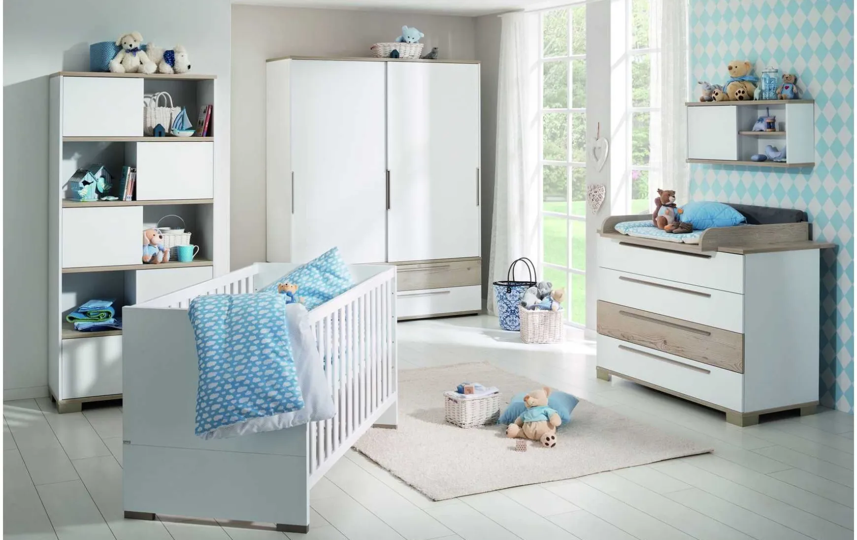 - Nicht im Preis enthalten: Wickelaufsatz, Kinderbett, Wandboard, Regale, Kleiderschrank