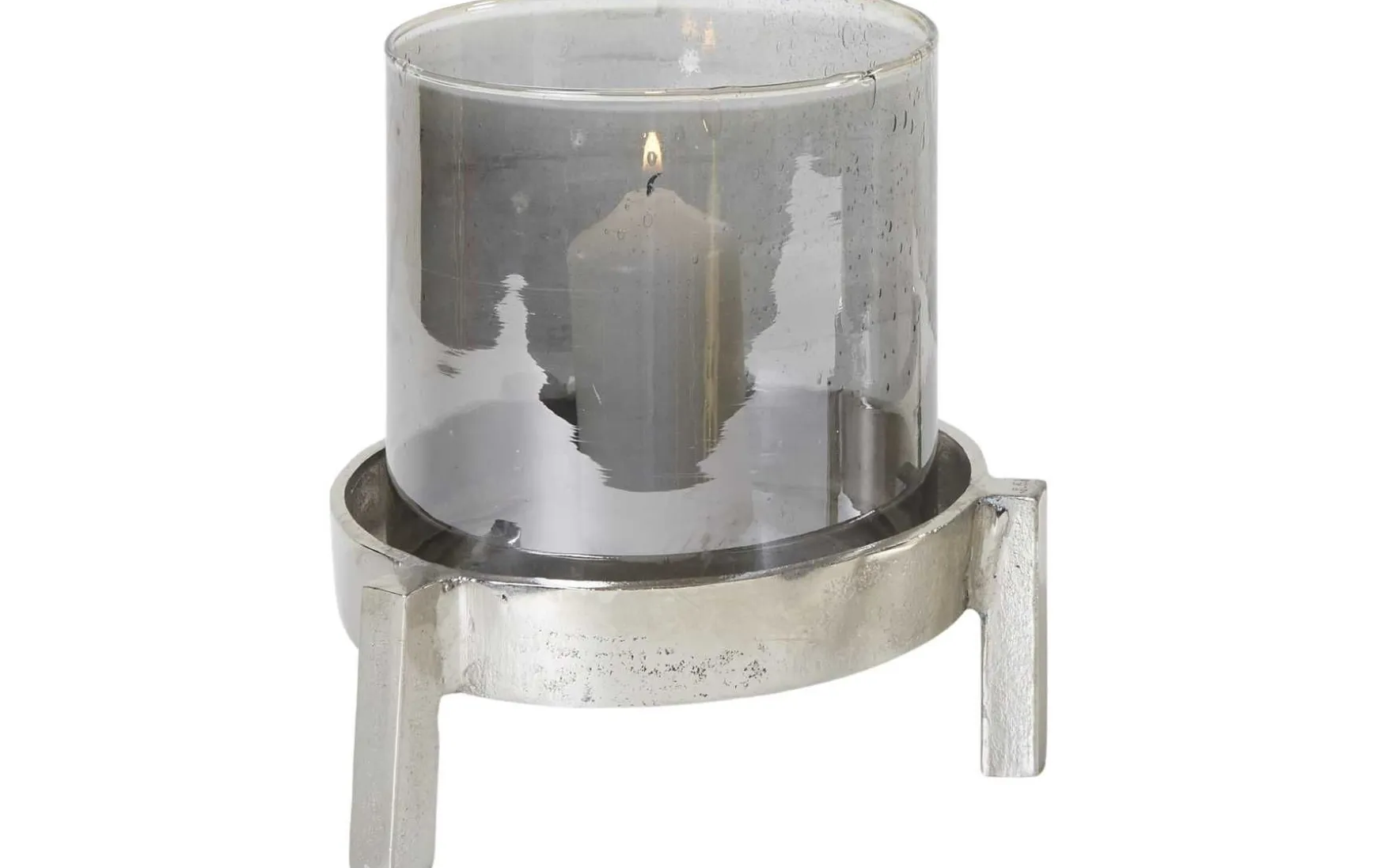 Dieses runde Windlicht aus Rohaluminium und Glas überzeugt durch seinen markanten Industrial Look und hochwertige Verarbeitung. Die Kombination aus silberfarbenem Metall und klarem Glaseinsatz verleiht dem Design eine moderne, zugleich zeitlose Ausstrahlung. Mit einem Durchmesser von ca. 20 cm und einer Höhe von ca. 35 cm eignet sich das Windlicht ideal als stilvolles Dekoelement auf dem Boden, Sideboard oder Beistelltisch. Die runde Form sorgt für ein harmonisches Gesamtbild, während das Glas das Kerzenlicht optimal zur Geltung bringt. Das robuste Rohaluminium unterstreicht den industriellen Charakter und macht das Windlicht besonders langlebig. Perfekt für moderne Wohnkonzepte, Loft-Stil oder als stilvoller Akzent in minimalistischen Einrichtungen.