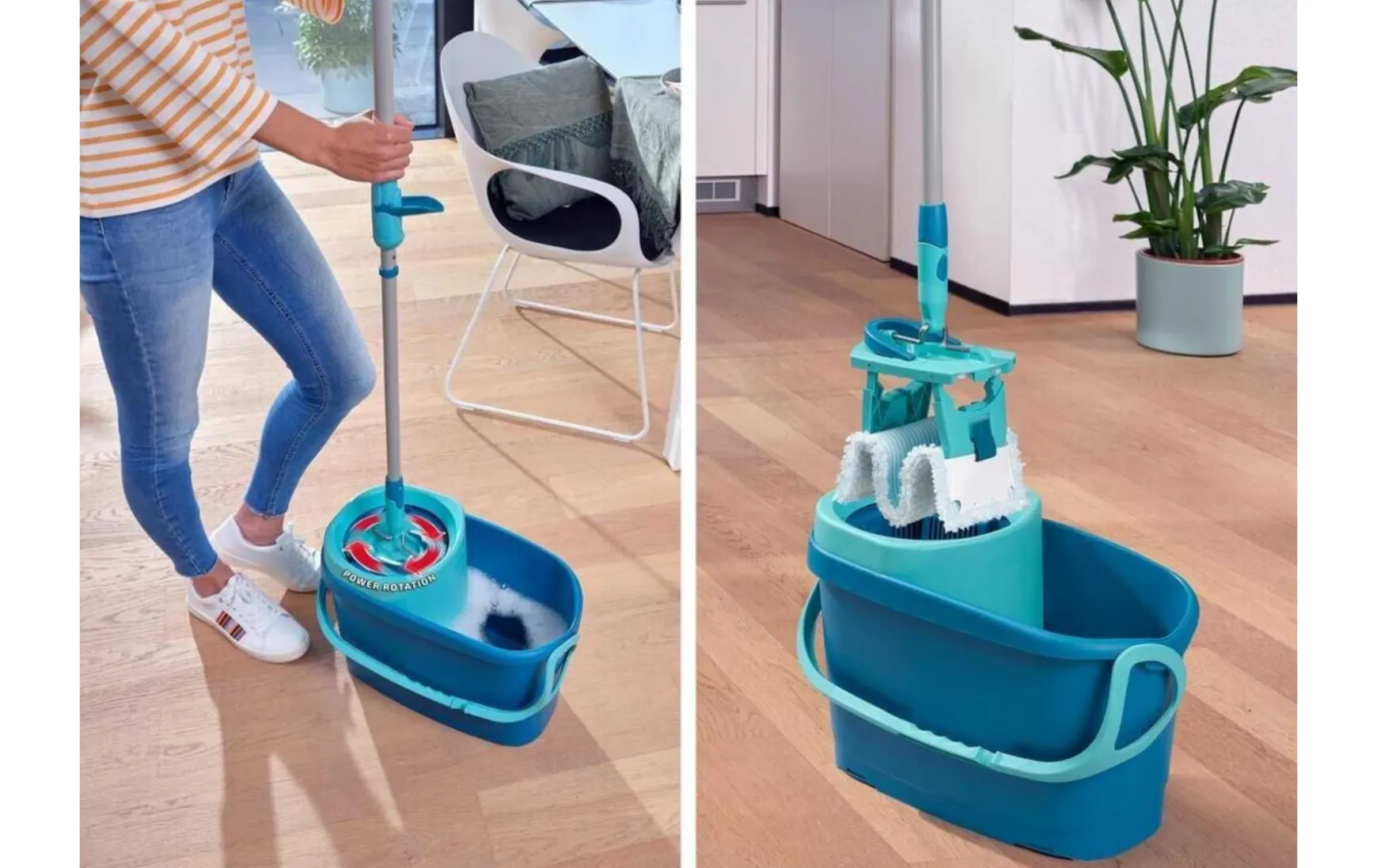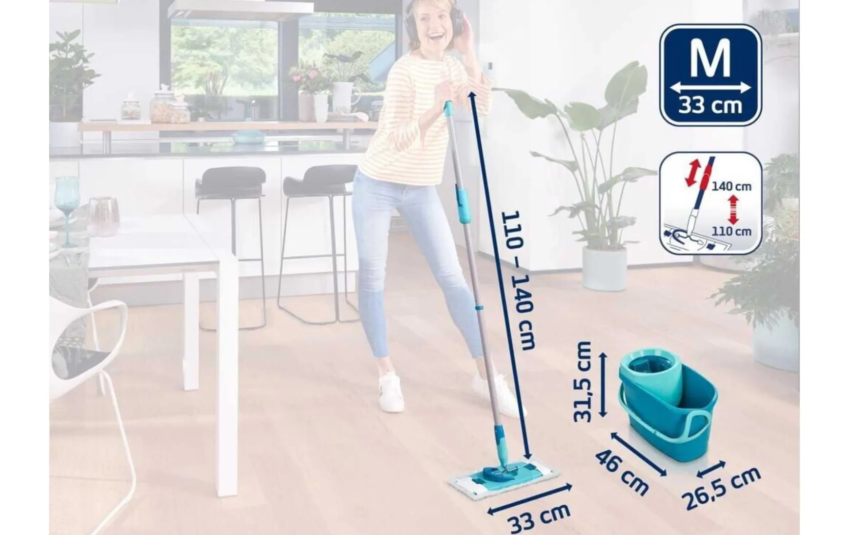 Das praktische Komplettset zum bequemen Feucht- und Staubwischen. Mit diesem Set werden alle Hartböden im Handumdrehen gründlich und hygienisch gereinigt. Dabei hält der Bodenwischer jahrelang – die Wischbezüge sind extrem langlebig und behalten ihre Reinigungskraft auch nach vielmaligem Waschen in der Waschmaschine bei. Das ist nicht nur nachhaltig, sondern spart auch Geld. Das Set enthält den Combi M Bodenwischer mit Wischbezug micro duo, den dazu passenden Combi-Eimer mit 12 Liter Volumen und den Wringer zum bequemen Ausdrücken des Wassers aus dem Wischbezug. Und das alles, ohne sich bücken und das Schmutzwasser anfassen zu müssen.
