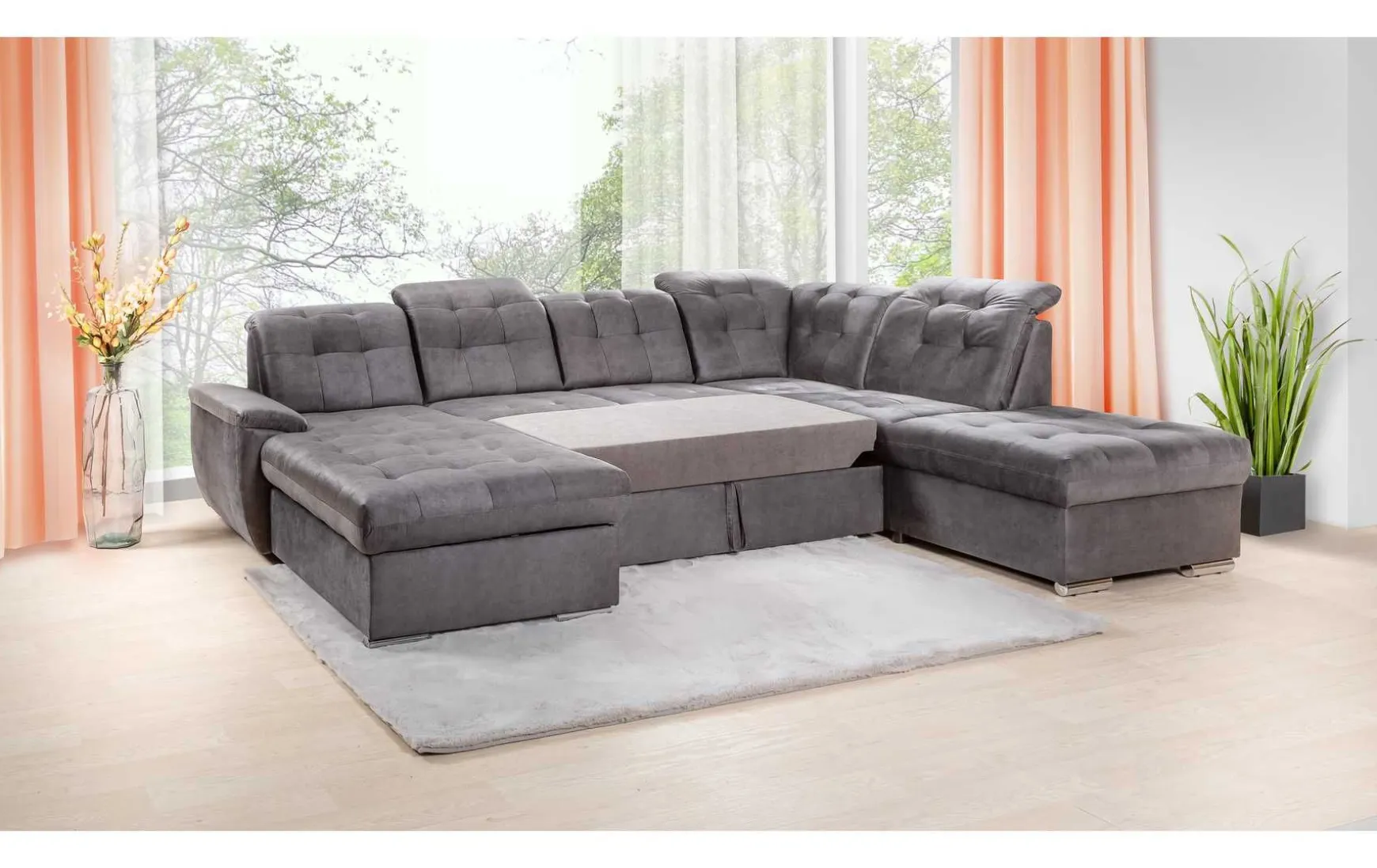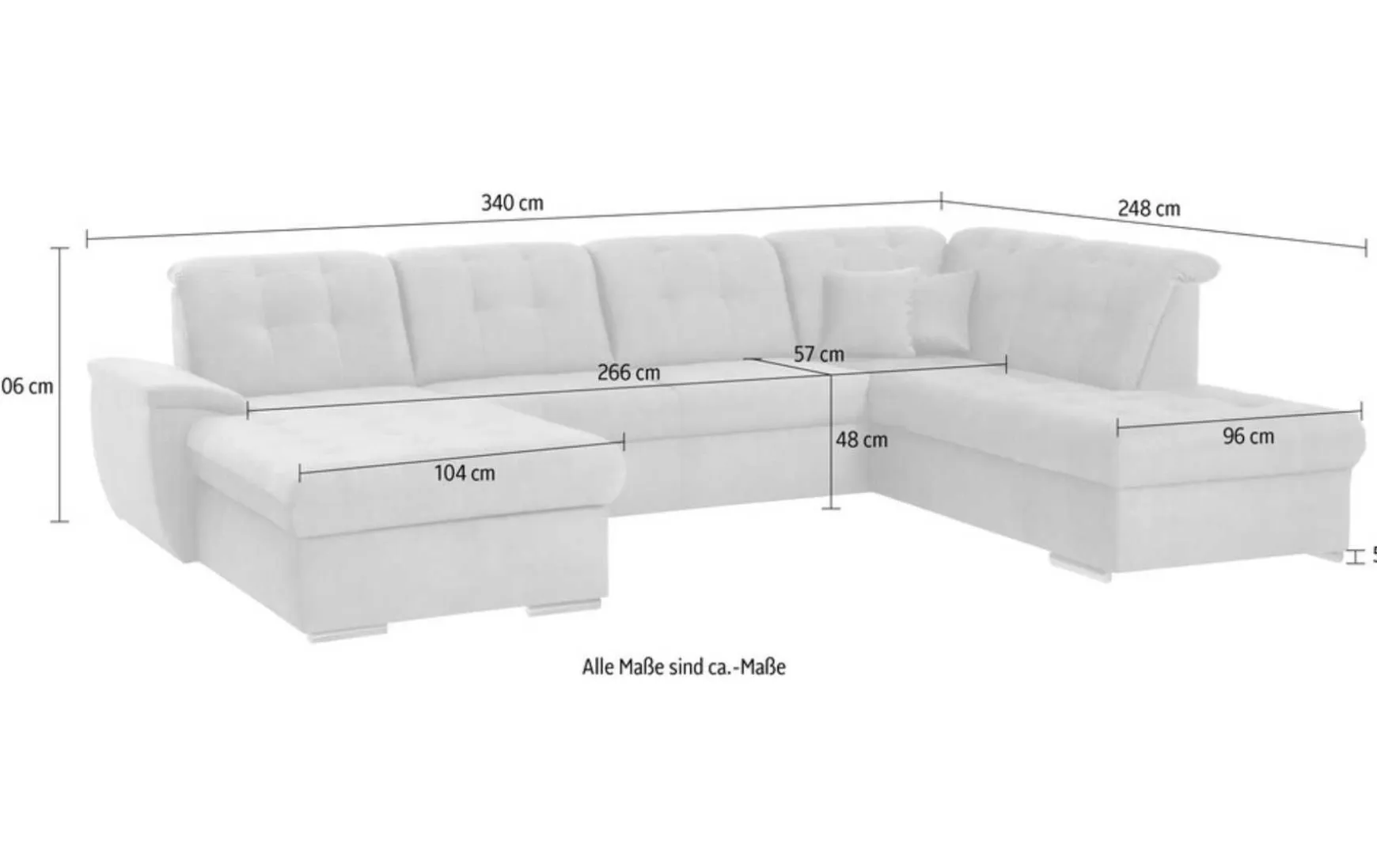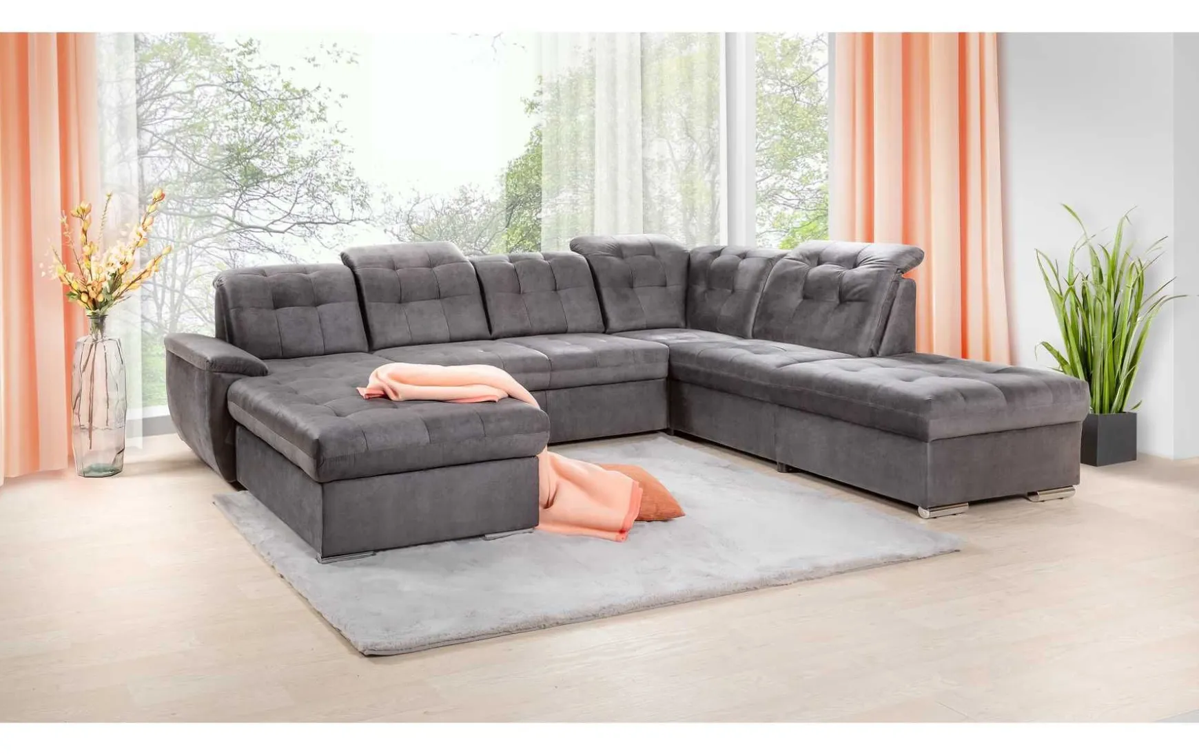Diese großzügige Wohnlandschaft in moderner U-Form überzeugt durch hohen Komfort, durchdachte Funktionen und ein zeitloses Design in elegantem Anthrazit. Die integrierte manuelle 6-fache Kopfteilverstellung ermöglicht eine individuelle Anpassung für entspanntes Sitzen und Zurücklehnen. Dank der komfortablen Liegefunktion lässt sich die Wohnlandschaft in eine großzügige Liegefläche von ca. 122 x 266 cm verwandeln. Der Longchair mit praktischem Stauraum bietet zusätzlichen Platz für Decken und Kissen. Mit einer Breite von ca. 340 cm eignet sich die Wohnlandschaft ideal für Familien und gesellige Abende. Individuell konfigurierbar und in weiteren Farbvarianten erhältlich, ist sie die perfekte Lösung für moderne Wohnräume.