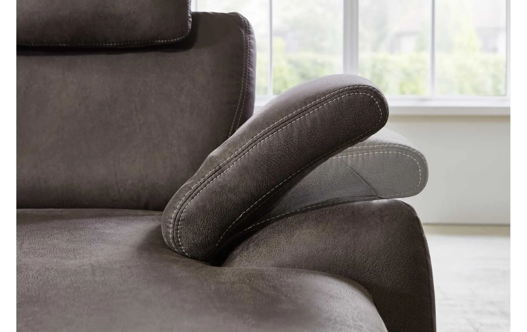 - Gegen Mehrpreis erhältlich: Premium Kopfstütze, Stauraum, Bettfunktion, Armteilverstellung, Rücken echt bezogen, Kissen