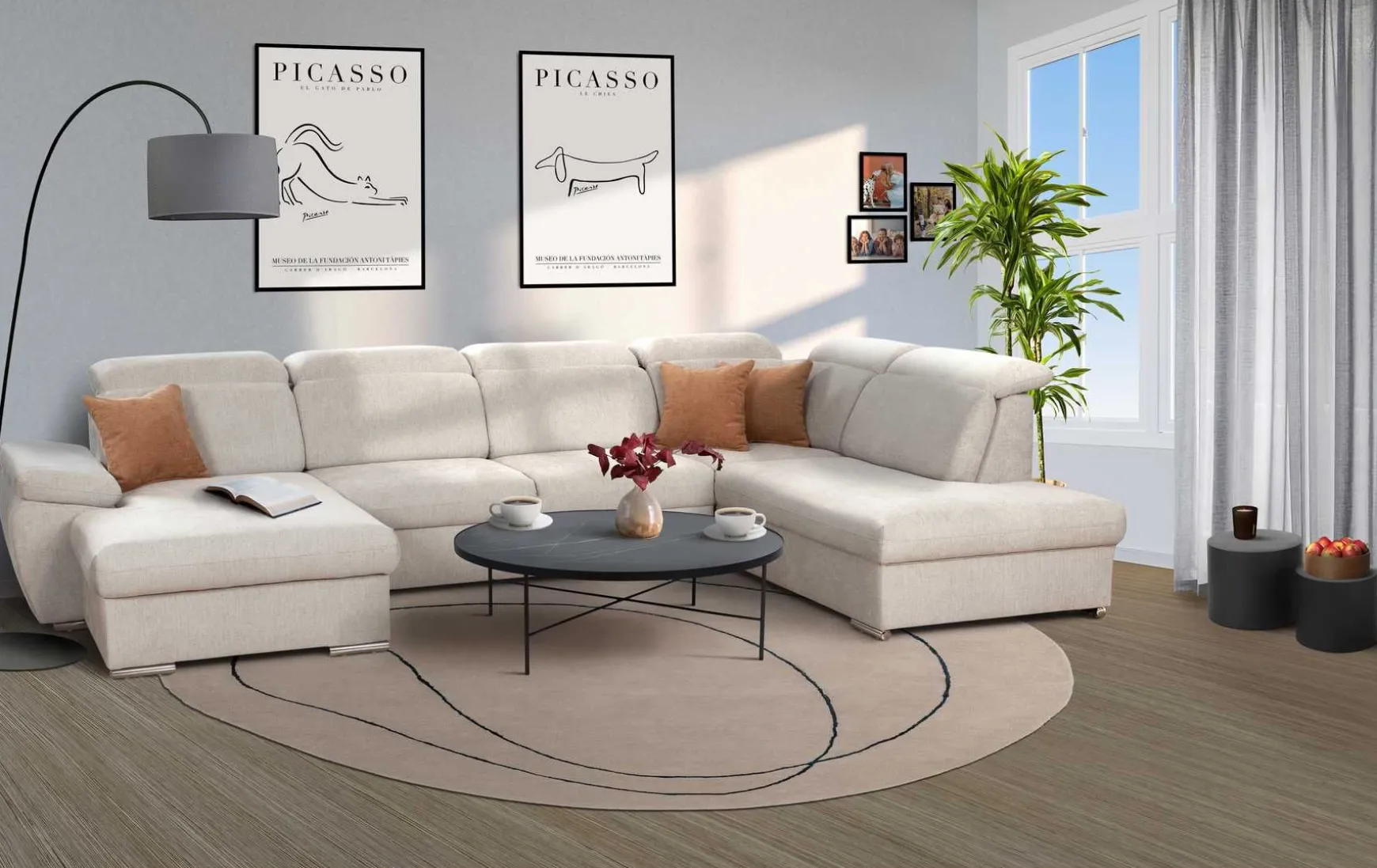 Diese moderne Wohnlandschaft in großzügiger U-Form überzeugt durch hohen Komfort, funktionale Ausstattung und ein zeitgemäßes Design. Die integrierte Kopfteilverstellung sorgt für individuellen Sitz- und Liegekomfort, während die echt bezogene Liegefläche ein hochwertiges Gesamtbild bietet. Mit einer Breite von ca. 360 cm und einer großzügigen Liegefläche von ca. 122 x 256 cm eignet sich die Wohnlandschaft ideal zum Entspannen, Relaxen und Übernachten. Dank „Rücken echt“ ist das Sofa frei im Raum platzierbar. Die komfortable Polsterung aus Kaltschaum auf Nosagfederung garantiert langanhaltenden Sitzkomfort. Individuell konfigurierbar und in weiteren Farbvarianten erhältlich, lässt sich die Wohnlandschaft optimal an persönliche Wohnwünsche anpassen. Optional sind Bettfunktion und Stauraum gegen Mehrpreis erhältlich.