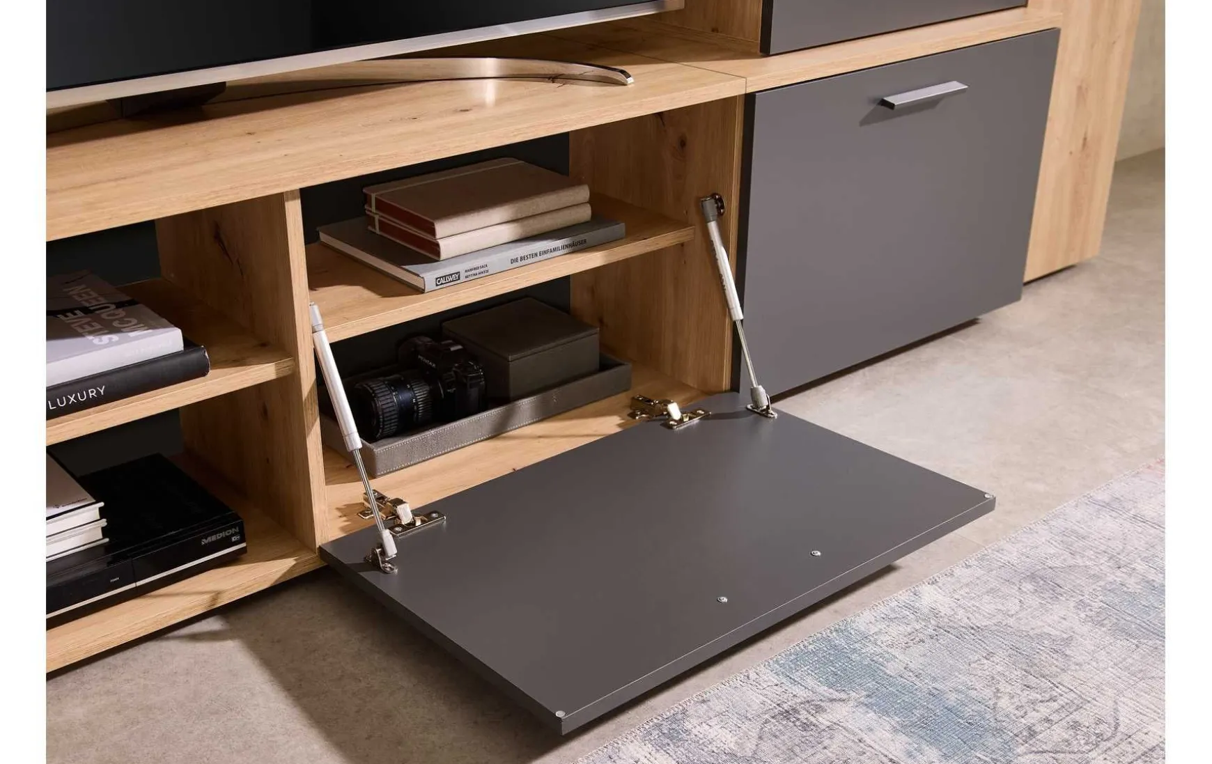 - Hauptfarbe: Anthrazit, Holzfarben