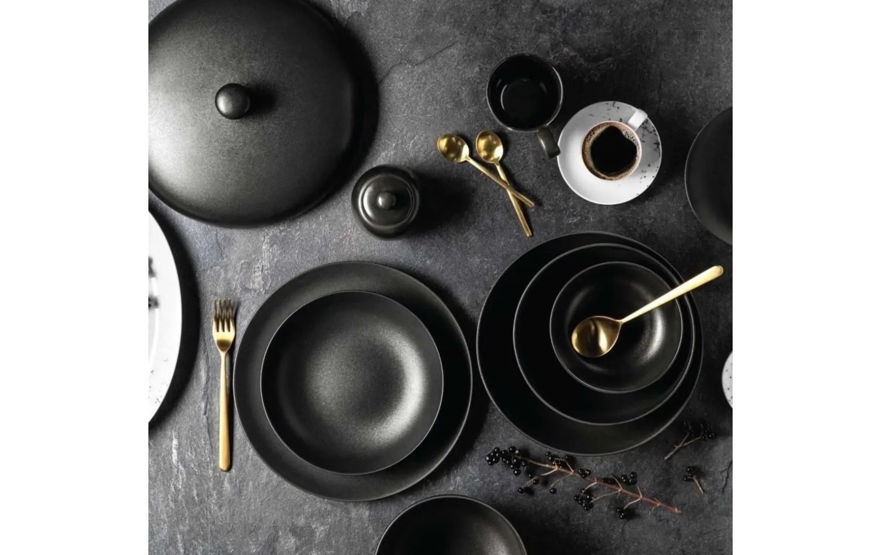 Mit dieser schwarzen Serie setzen Sie Ihre Gerichte ganz neu kontrastreich in Szene. Die schwarz schimmernde Farbe lässt Ihre Mahlzeit noch frischer erscheinen und bietet eine willkommene Abwechslung zu herkömmlichem weißen Porzellan. Durch die strukturiere Oberfläche ist die Serie nicht nur optisch ein absolutes Highlight. Das Motto hierbei lautet ganz klar: Nicht nur gucken, sondern auch anfassen!